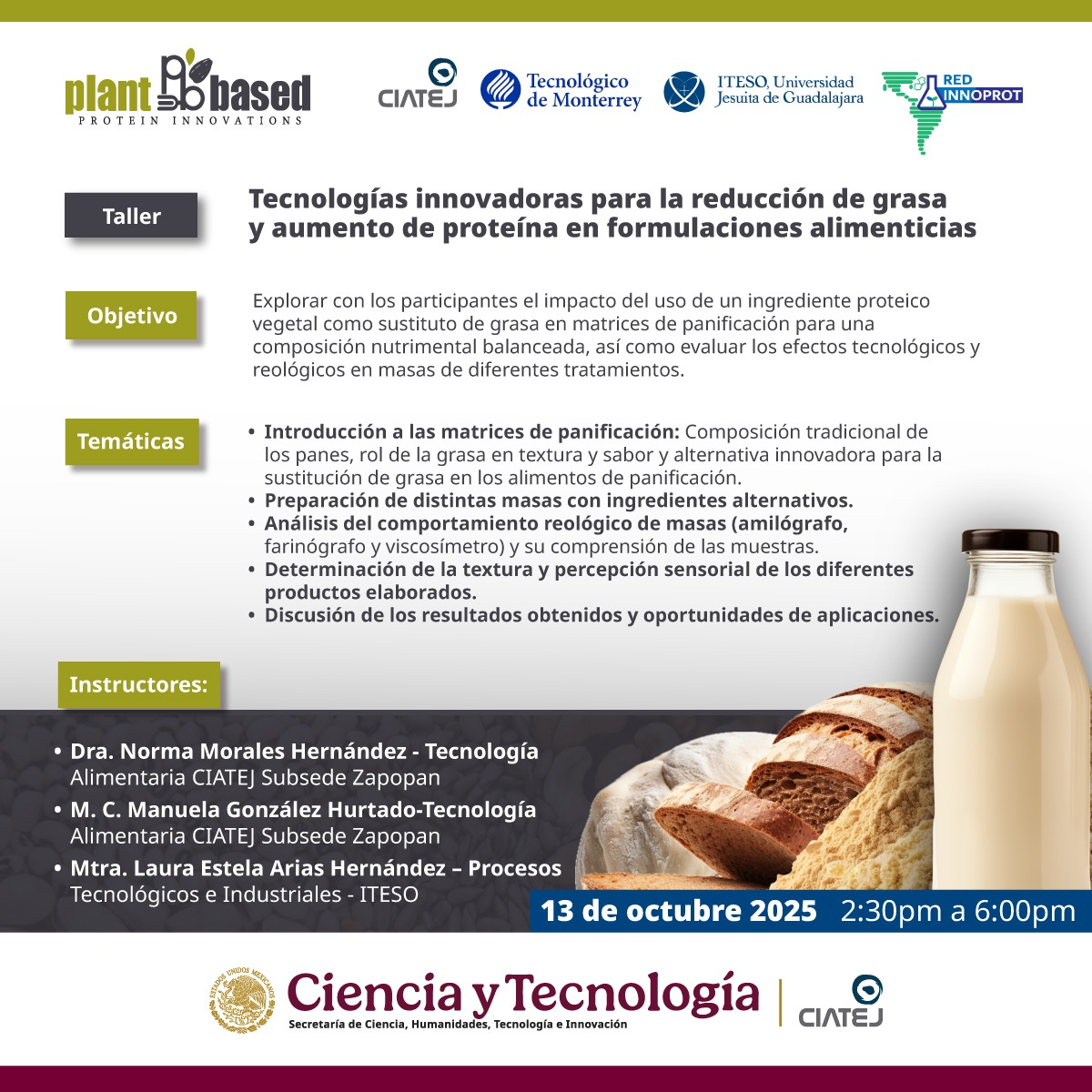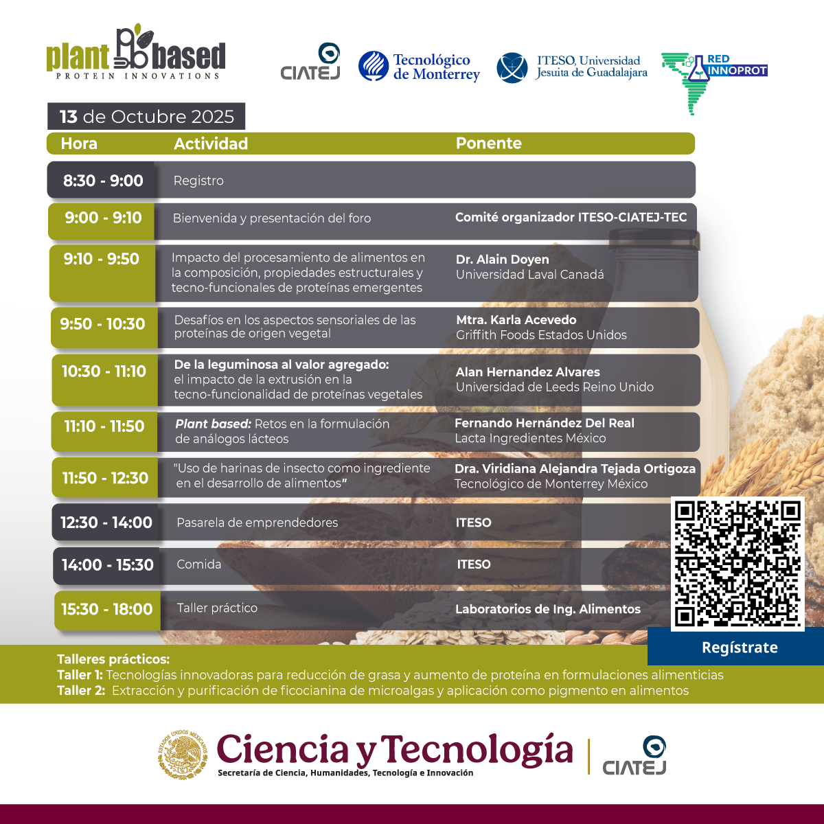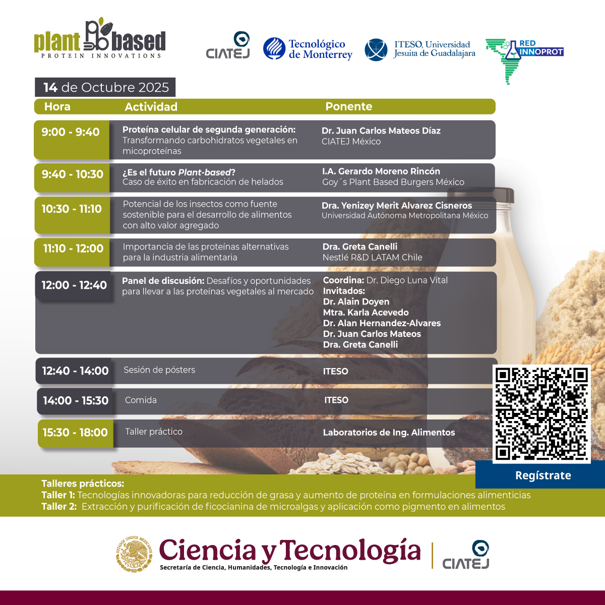 En el marco de los 20 años de Ingeniería de Alimentos, se llevarán a cabo conferencias durante las mañanas y talleres por las tardes, con la finalidad de compartir los avances científicos y desarrollos tecnológicos en el área de las proteínas vegetales, así como la inclusión de proteínas provenientes de insectos y de hongos, para la alimentación actual.