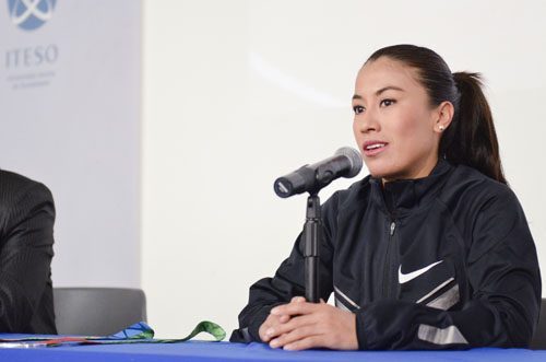La atleta estuvo en el campus y tras la charla del académico Luis Aarón Quiroga Morales sobre nutrición y rendimiento deportivo, compartió con los estudiantes que sus tiempos de recuperación también fueron más rápidos con la alimentación adecuada.
