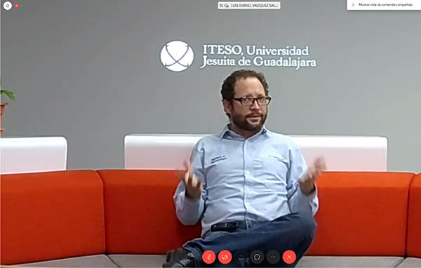 De manera general explicó lo que es una nanoestructura y luego compartió algunas imágenes de los laboratorios con los que cuenta el ITESO, en los que se podía ver a estudiantes utilizando equipos especializados como el microscopio de fuerza atómica. "Los equipos son muy costosos, no es como que alguien pueda comprar una máquina para tenerla en casa. En el ITESO contamos con los equipos para poder manipular nanoestructuras", detalló el Vasallo.