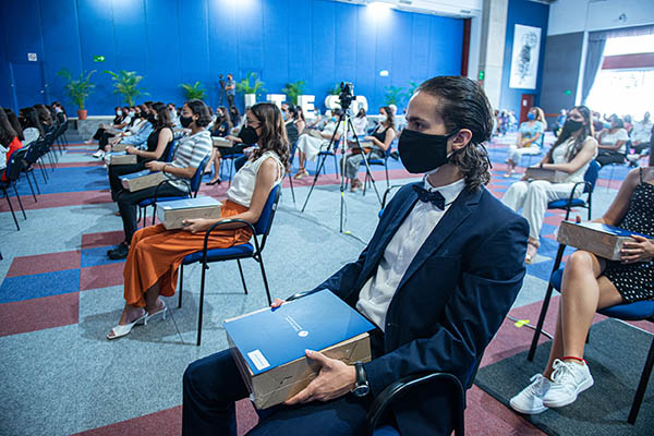 Las ceremonias de entrega de becas de excelencia se realizaron los días jueves 10 y viernes 11 de junio, en al Auditorio Pedro Arrupe, SJ. Para atender de mejor manera todas las disposiciones de distanciamiento recomendadas por las autoridades sanitarias se programaron cuatro momentos que además se transmitieron en vivo a través de redes sociales para incluir a quienes no pudieron asistir presencialmente al campus.