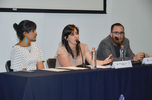 El documental dio paso a la mesa de reflexión "Migración y refugio", en la que participaron Ana Sofía Torres, profesora de la Licenciatura en Derecho del ITESO, y Luis Enrique González, integrante del área jurídica de la organización FM4 Paso Libre, que atiende a migrantes centroamericanos en su paso por Guadalajara. El diálogo fue moderado por Paloma Patlán, colaboradora del Programa de Asuntos Migratorios del Centro de Investigación y Formación Social del ITESO (CIFS).